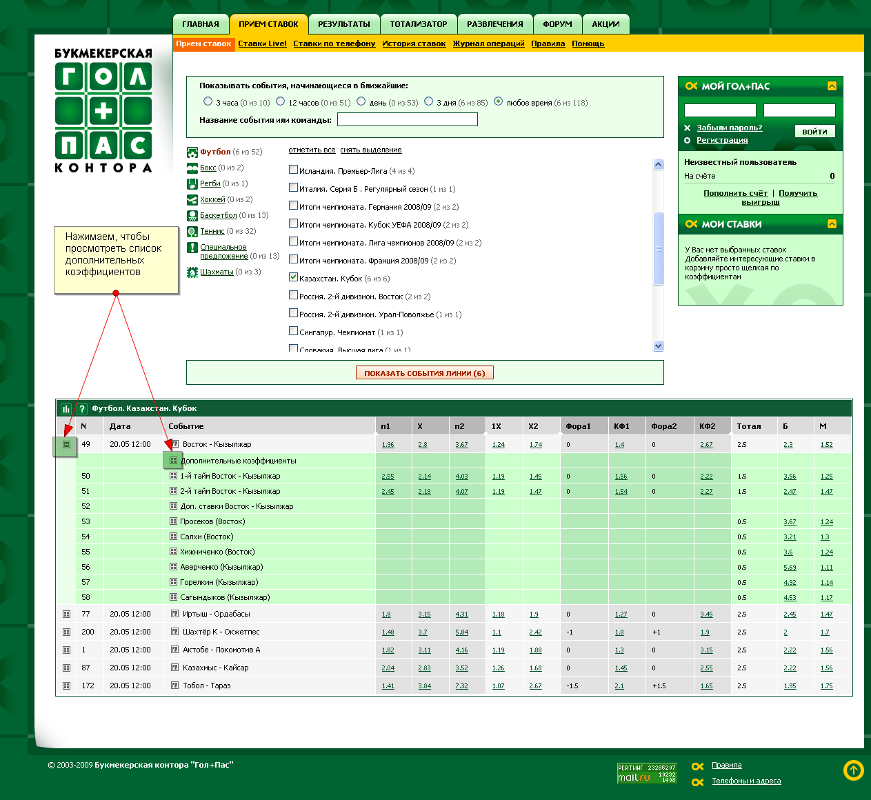После регистрации у вас появится индивидуальный профиль, в котором будут отображаться ваши персональные данные. Далее вам необходимо пополнить счет любым удобным для вас способом. В связи с техническими особенностями пополнения счета и тем, что это может занять определенное время, рекомендуем вам пополнять счет заранее, за несколько дней до события, на которое вы предполагаете делать ставки, либо воспользоваться автоматизированным приемом Web-money.